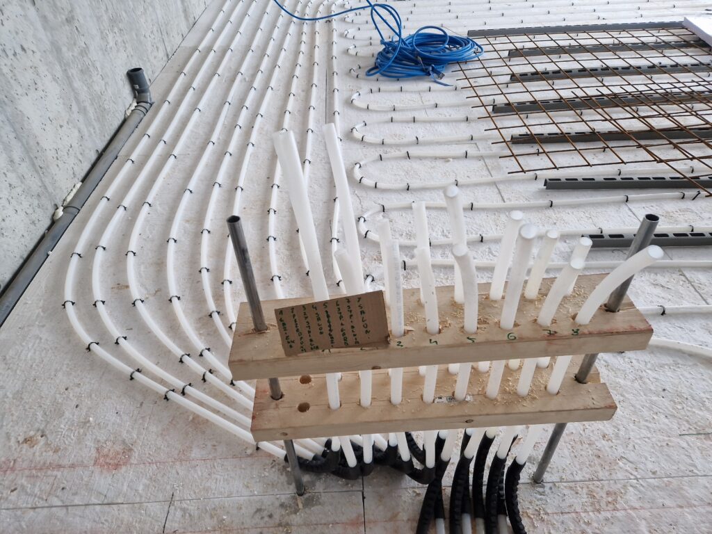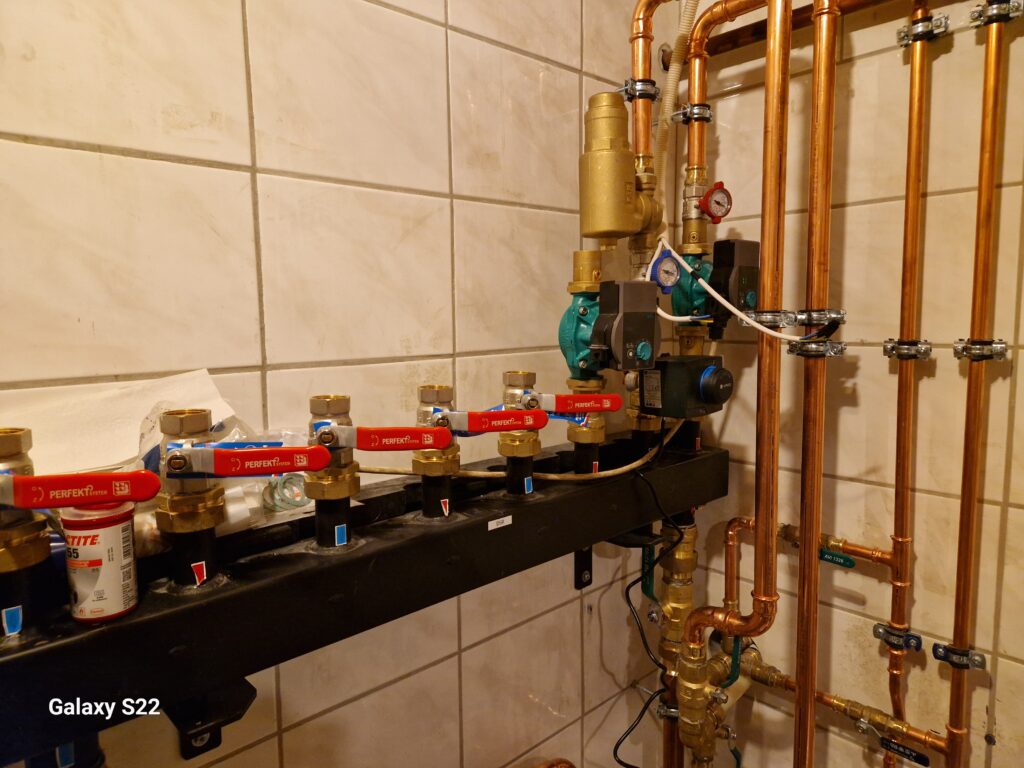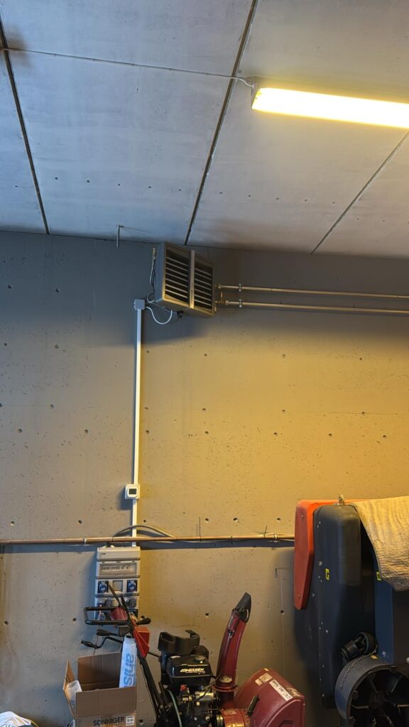Projekt i montaż gruntowej pompy ciepła z pionowym wymiennikiem gruntowym, ogrzewaniem podłogowym oraz instalacją wody użytkowej i kanalizacji wraz z pełną automatyką sterującą. Użycie pompy ciepła jako źródła ciepła dla ogrzewania warsztatu przy użyciu nagrzewnic wentylatorowych